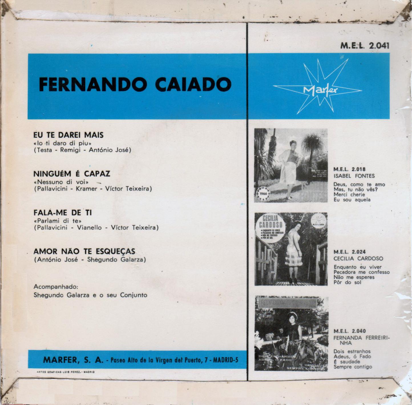 Fernando Caiado (EP Marfer M.E.L. 2.041 - 1966), acompanhado por Shegundo Galarza e o seu Conjunto.