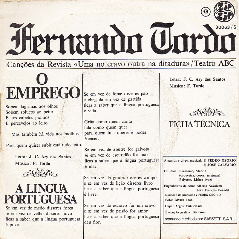 Fernando Tordo - O Emprego (single 1974)
