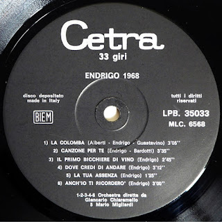 Sergio Endrigo - Endrigo (LP Fonit Cetra - LPB 35033, Novembro de 1968/Italia).