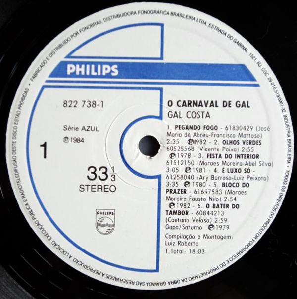 Gal Costa – O Carnaval De Gal (LP Philips – 822 738-1, 1984).