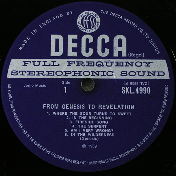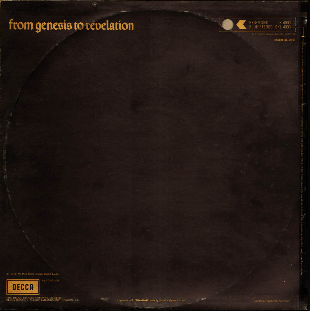 Genesis – From Genesis To Revelation (LP Decca – SKL 4990, 1969).