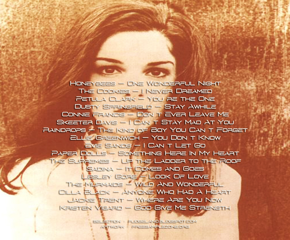 De modo a homenagearmos este dia tão especial (Dia Internacional da Mulher), apresentamos uma excelente compilação, toda ela interpretada por destacadas mulheres, e que reúne algumas das mais famosas intérpretes da música pop dos anos 60 como, Cila Black, The Supremes, Connie Francis , Dusty Springfield ou Pertula Clark, entre outras.
