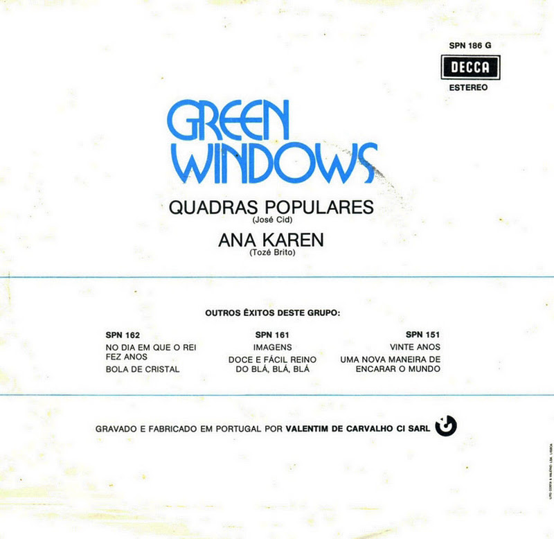 segunda-feira, 9 de maio de 2011Foram precisamente esses dois temas que os Green Windows cantaram no Festival dos Dois Mundos, que mais tarde viriam a ser gravados em Londres, sob o nome de Twenty Years e Story of a man, e que sairam para o mercado em formato single, tendo sido então a grande aposta de Dick Rowe. No entanto, o disco passou quase totalmente despercebido no mercado inglês.Talvez não tenha sido alheio a esse facto ter sido a aposta de Dick Rowe para lado A do single a canção "Story of a Man", que bem vistas as coisas, é comercialmente bem menos apelativa que Twenty Years. Contrariamente, cá em Portugal, quando os Green Windows apostaram na divulgação da canção Twenty Years, fizeram-no cantando em português e colocando-a no lado A do single posteriormente editado em Portugal. E o resto é história... Vinte Anos transformou-se, talvez, na canção mais emblemática de José Cid de toda a sua carreira (autoria de José Cid e Tózé Brito) e vendeu mais de 100.000 unidades.