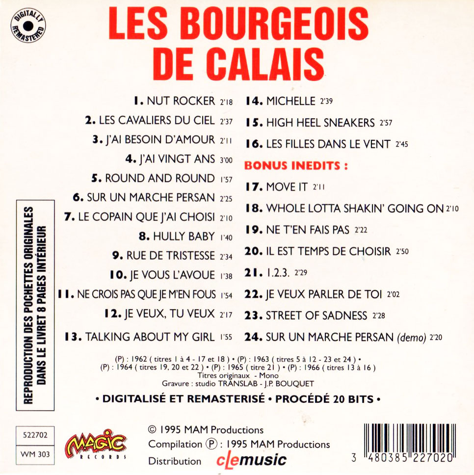 - 14 juin 1961 - Les Bourgeois de Calais remporte la coupe du meilleur groupe Europeen dans le Festival Rock across the Channel à Calais;