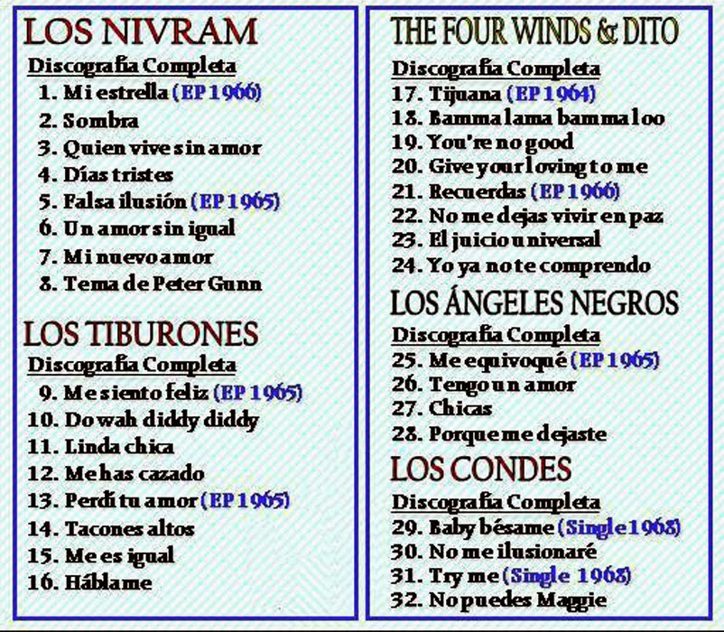 Etiquetas: España, Los Ángeles Negros, Los Condes, Los Nivram, Los Nivram y Otros Grupos Españoles, Los Tiburones, Spain, The Four Winds And Dito