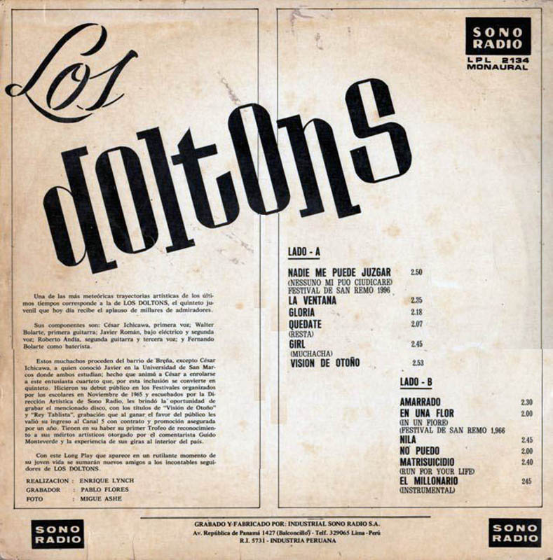 Los Doltons (Peru) - LP Vol. I - Sonoradio LPL 2134 Monaural, 1966.