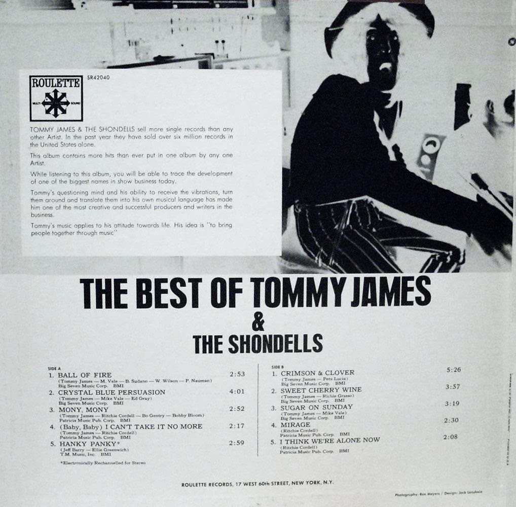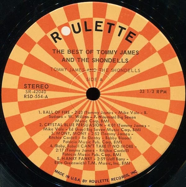 A editora Roulette pôs à disposição os letristas Richie Cordell e Bo Gentry para a tarefa de escreverem as canções para Tommy James and The Shondells. De 1967 a 1969, o grupo conseguiu vários sucessos na Roulette, incluindo as cinco que chegaram às dez primeiras posições, "I Think We're Alone Now", "Mirage", "Mony Mony", "Crimson and Clover" (o segundo e último a chegar à primeira posição nos EUA), "Sweet Cherry Wine" e "Crystal Blue Persuasion".
