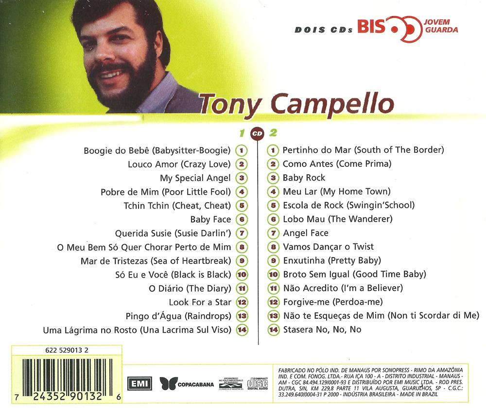 Tony Campello (Sérgio Beneli Campello), cantor e produtor, nasceu em São Paulo/SP em 24/2/1936. Interessou-se por música desde os nove anos, passando a estudar sozinho violão e piano. De 1953 a 1958, integrou o conjunto Ritmos OK, em Taubaté SP, tendo também atuado, de 1956 a 1958, no Mário Genari Filho e Conjunto.