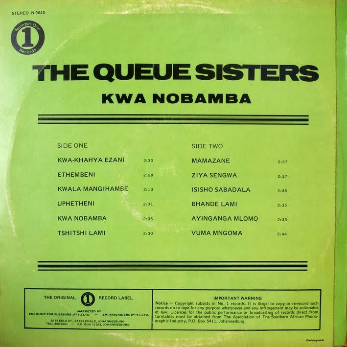 The Queue Sisters - Kwa Nobamba (LP Number One N 9043, 1975). Edição Sul Africana.