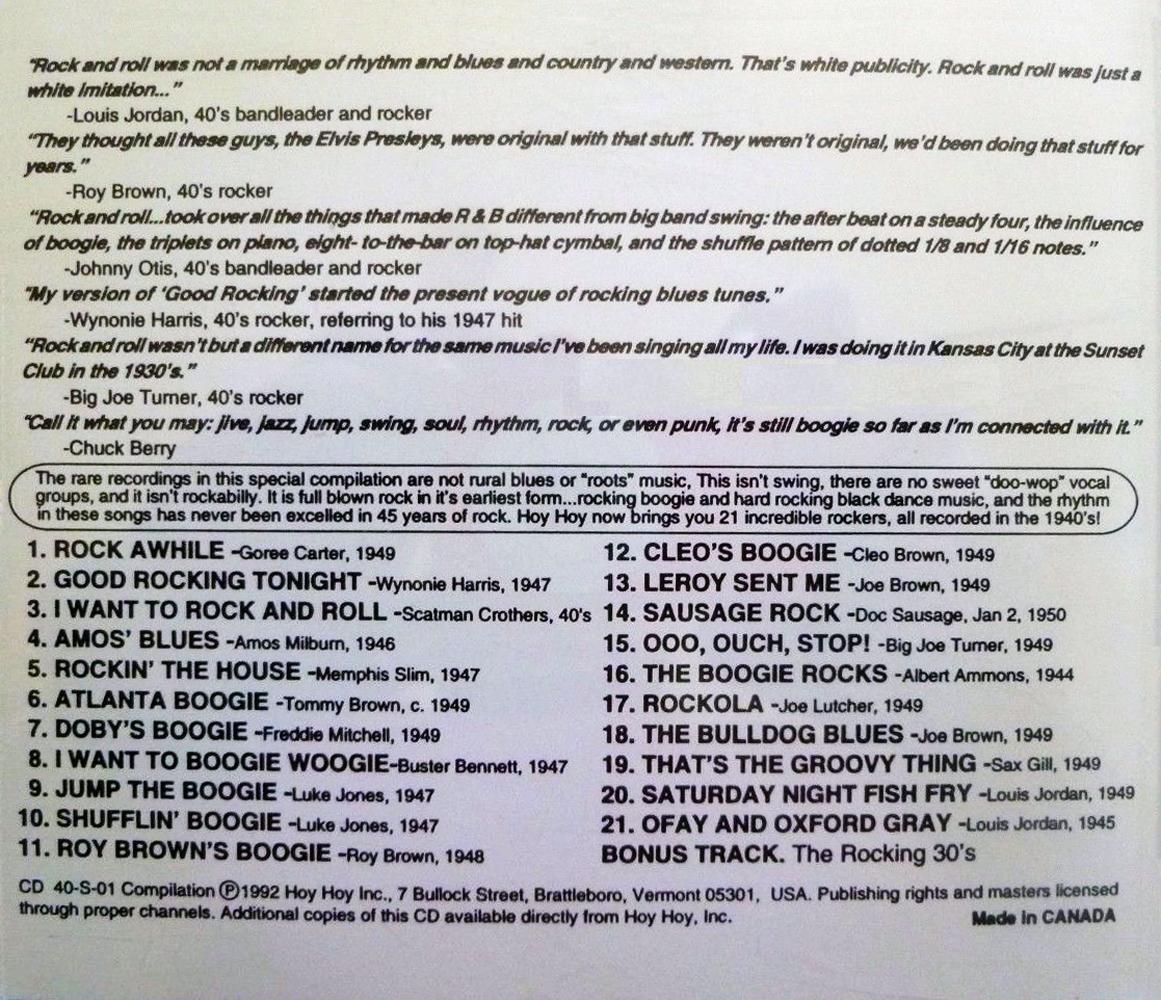 Esta é uma fantástica compilação, um autêntico e incrível mergulho profundo na pré história do rock 'n' roll, quando ainda se misturavam o Boogie, o jazz, o country e o blues, antes de aparecerem nomes como, Elvis Presley, Little Richard, Chuck Berry, Bo Diddley ou até Bill Haley…